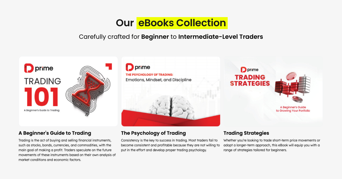Understanding this gap, D Prime proudly introduces a comprehensive educational ecosystem – featuring detailed Trading Guides, in‑depth eBooks, and interactive Video Tutorials. These resources are designed to help traders learn progressively, whether you are just discovering how to trade, exploring stock trading, or testing new crypto trading strategies.
