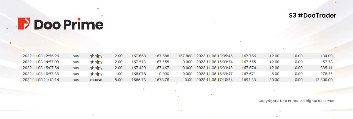 Xue YanqXXX made a 5-lots XAUUSD trade on 8th November 2022. With only 6 hours, he made an excess profit of 13,300 USD which dramatically uplifted his account’s yield and ranking.