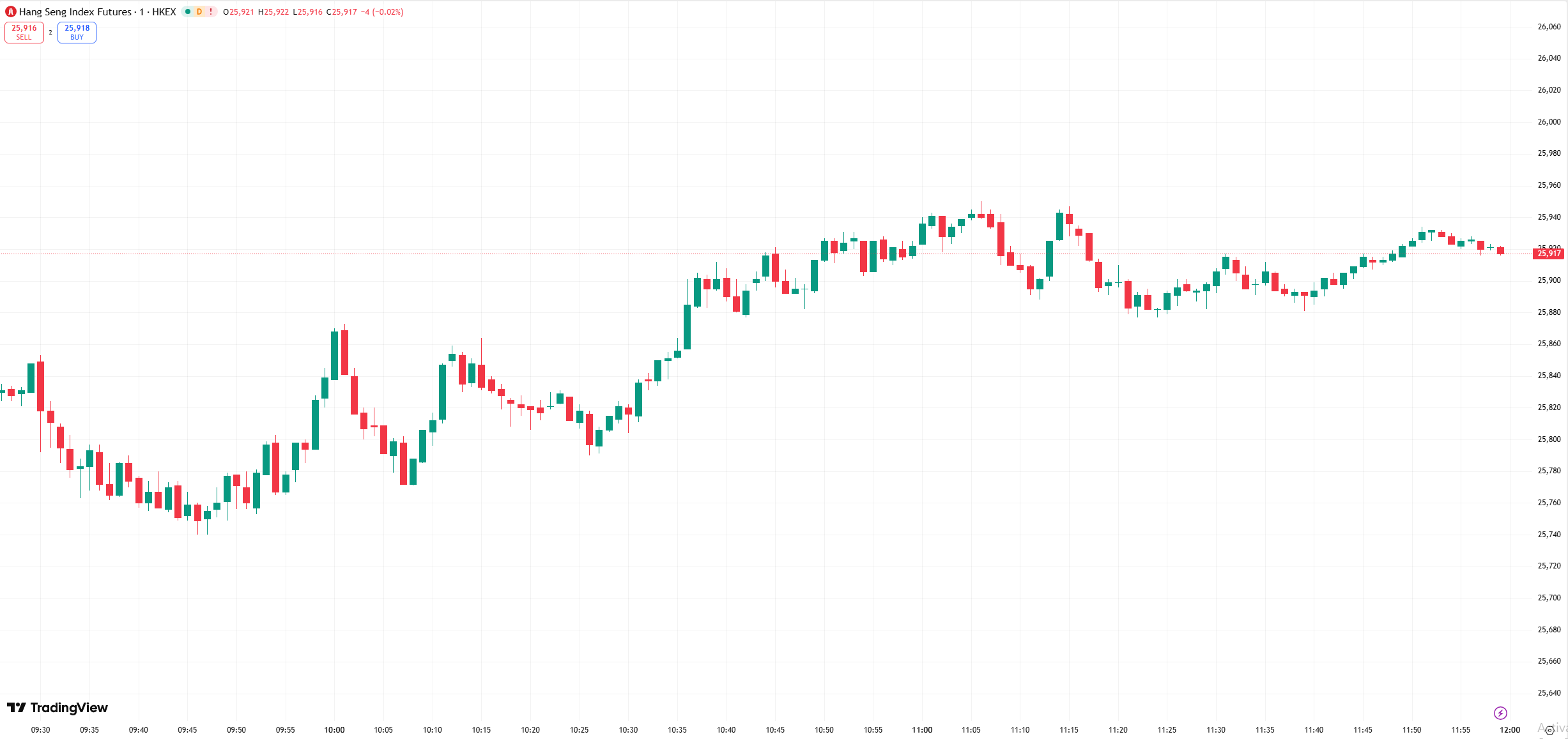 Hong Kong stocks opened higher and extended gains through midday. Tech names broadly advanced, with Lenovo, Xiaomi, and NetEase rising over 2 percent, and Meituan, Kuaishou, Alibaba up more than 1 percent.