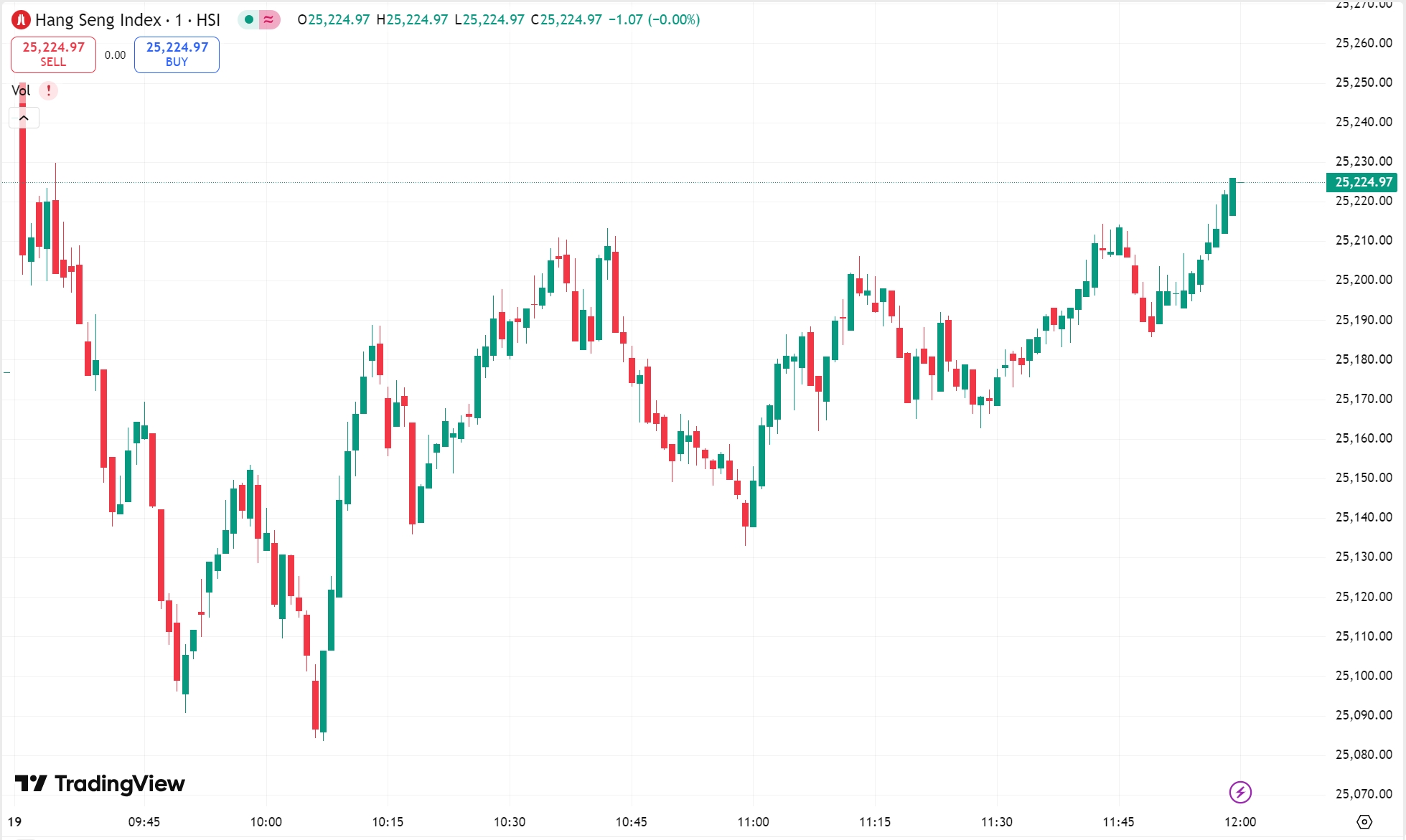 • 恒生指数涨 0.19%,收报 25,224.97 点