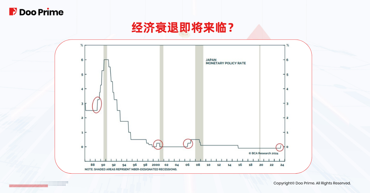但从过往的货币政策纪录来看,每每日本央行加息后,接着就会发生经济衰退。日本在 1989 年加息,1990 年就发生战后最为严重的衰退;2000 年加息,次年便陷入二战以后从未出现过的通货紧缩状态;2007 年加息后,日本经济增速又经历长期低迷。