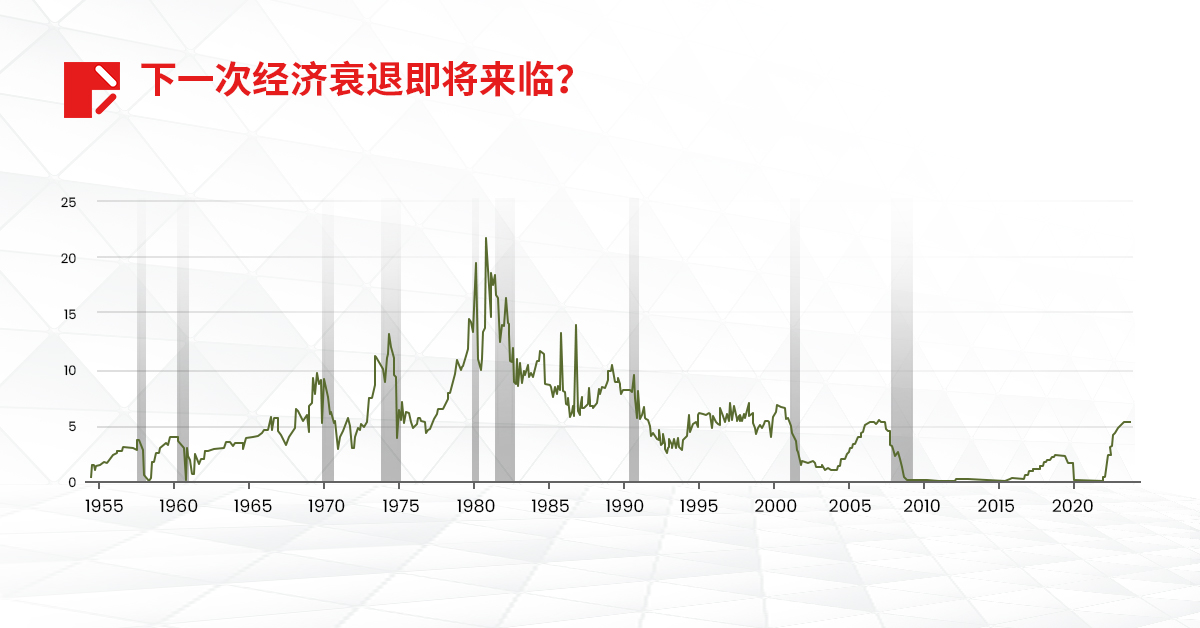 历史数据显示,美联储紧缩周期的结束往往预示着经济衰退,如附图上的灰色区域所示。