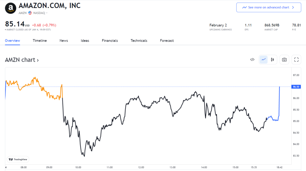 这一裁员新举措公布后,投资者对亚马逊最新的紧缩措施给予了积极的反应,认为这可能会提高这家电子商务公司的利润。亚马逊股票在盘后交易中一度上涨 1.71%;截至当天美股收盘,亚马逊股价微跌 0.79%,报收 85.14 美元。