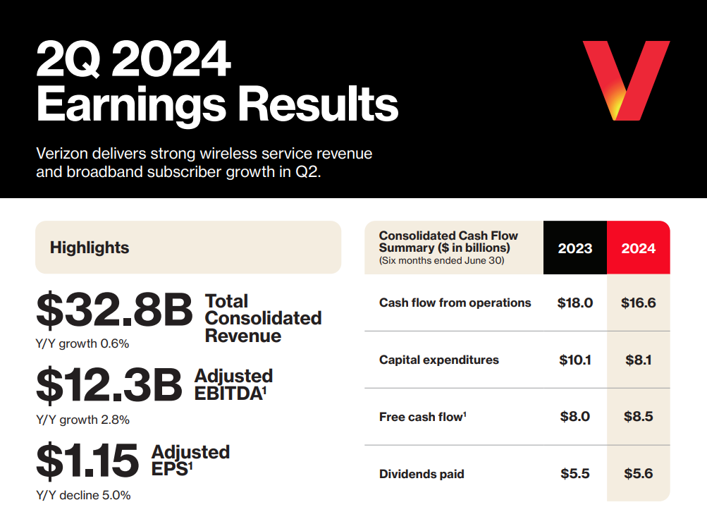(威瑞森通讯公布了第二季度业绩,显示营收同比增长 0.6%,达到 328 亿美元,但低于分析师预期的 331 亿美元。调整后每股盈利为 1.15 美元,符合市场预期。 )