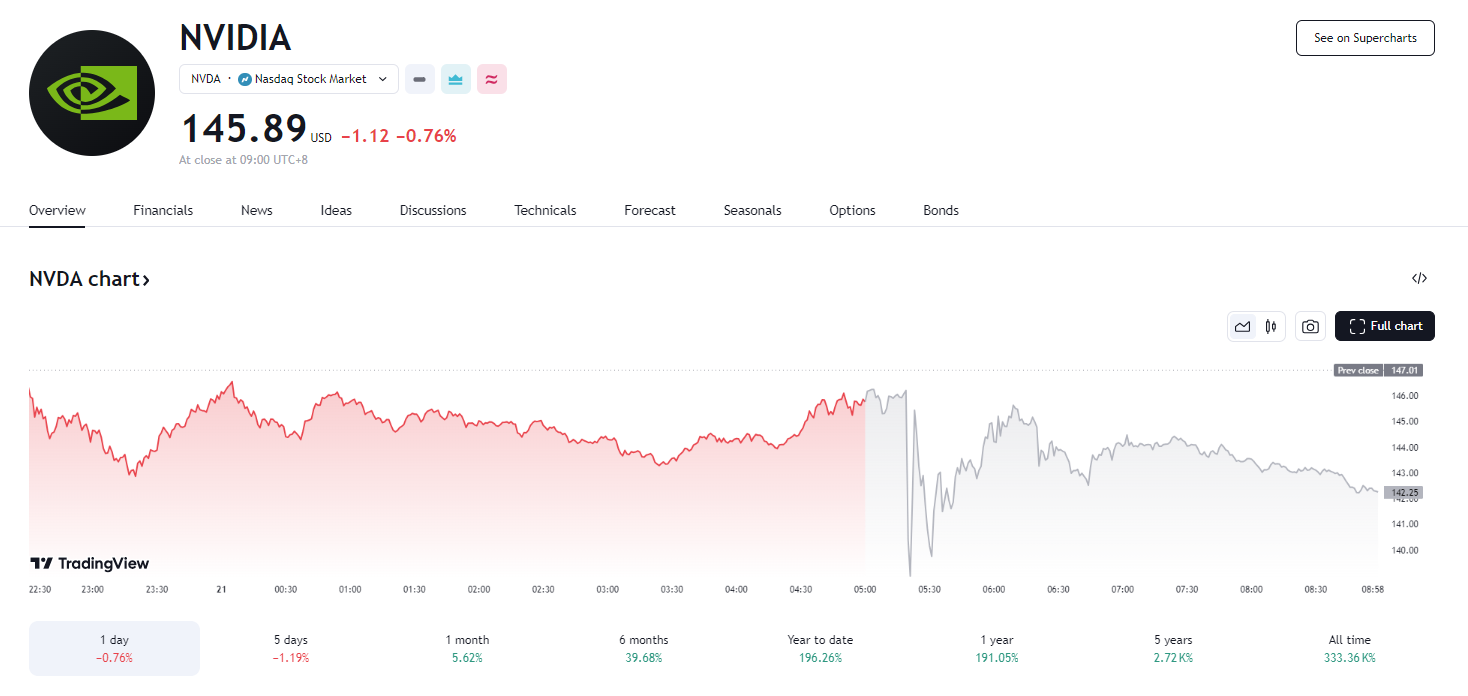 财报公布后,收跌近 0.8% 的英伟达股价盘后跌幅进一步扩大,盘后一度跌约 5%,后收窄多数跌幅,目前盘后跌超 1%。