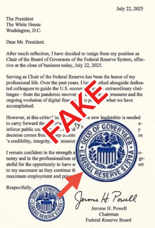 美国共和党参议员迈克·李在社交平台误转发了一封疑似由人工智能生成的假冒联储主席鲍威尔辞职信。信件称鲍威尔经过深思熟虑后决定辞去联储主席职务,辞职将于 7 月 22 日生效,但实际上鲍威尔并未辞职。