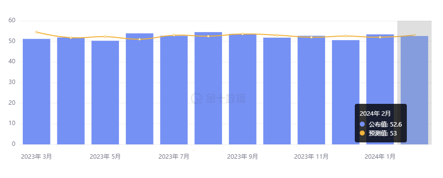 同日,ISM 公布的数据显示,美国 2 月 ISM 服务业指数 52.6,不及预期的 53,也低于 1 月前值的 53.4。