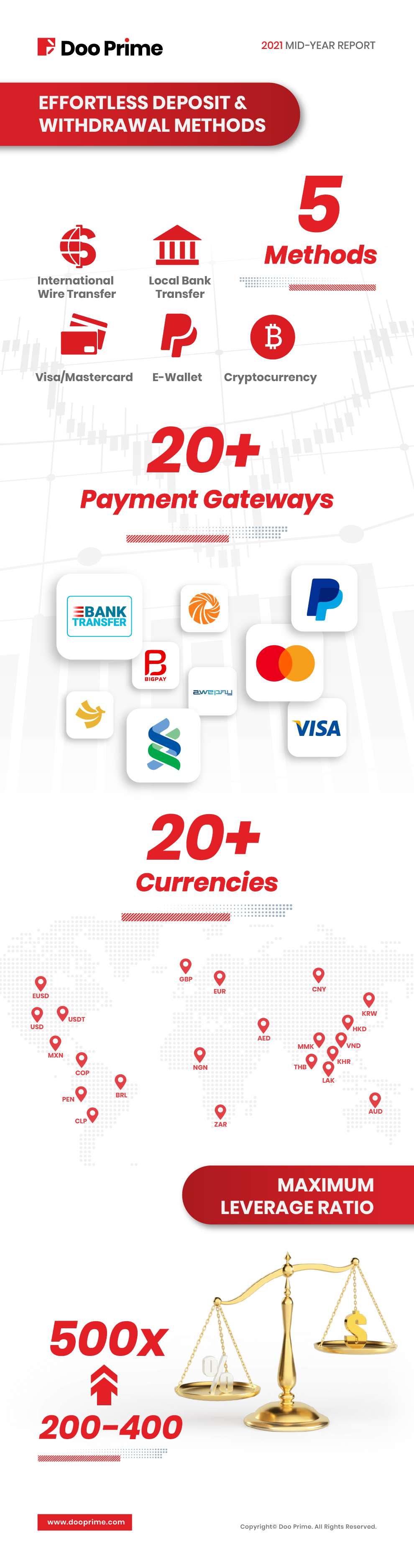With a solid vigorous group background, competitive trading cost, convenient deposit and withdrawal methods, plus 24/7 multilingual customer service, Doo Prime is committed to become your private veteran broker.