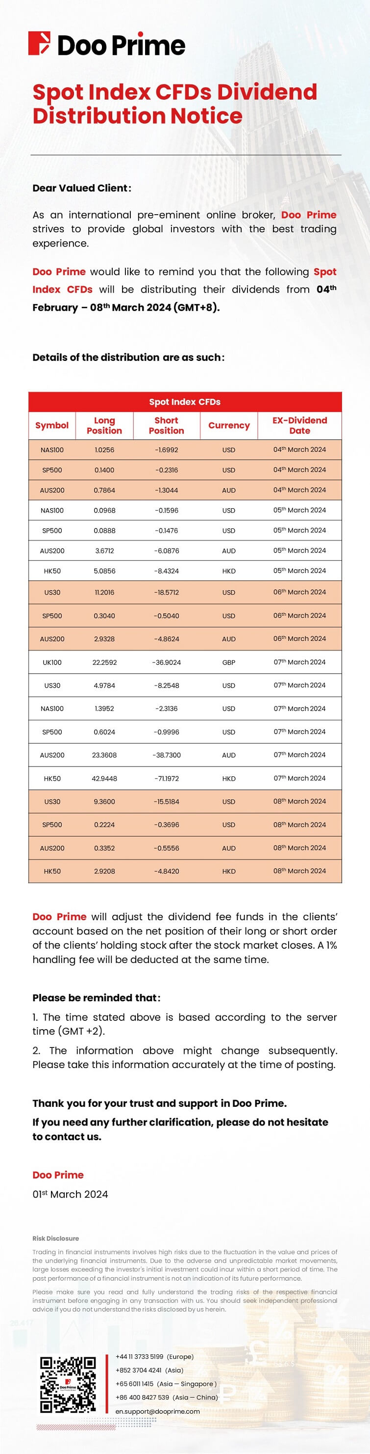 Doo Prime Spot Index CFDs Dividend Distribution Notice