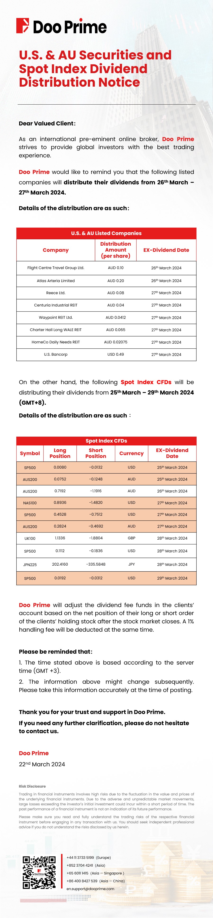2024-03-22 | Dividend Distribution Notice , Securities , Spot Index