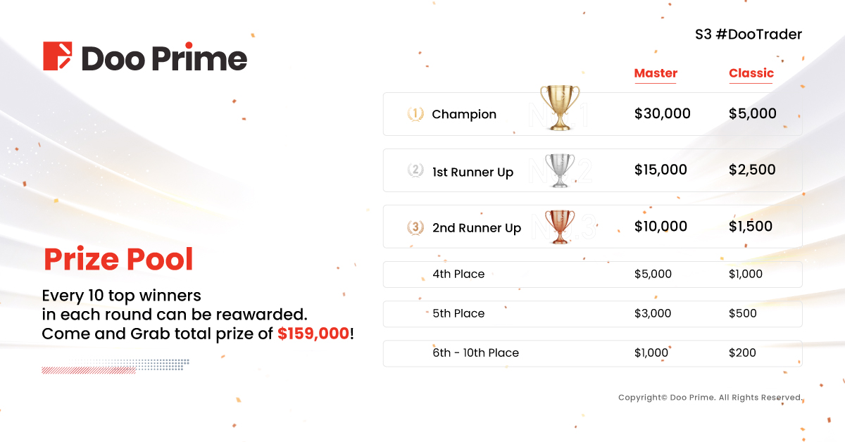 In this year’s first round of competition, Doo Prime hosts more than 5,000 accounts competing from all over the world, with two competing categories: Master and Classic.