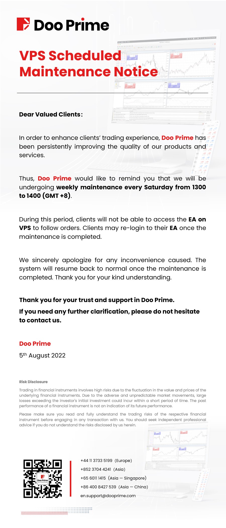 D Prime will upgrade MT4 Live 6 servers on April 18, 2026 to enhance performance. View the upgrade schedule and potential service impact.