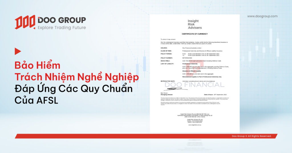 Không lâu sau đó, vào tháng 9, Doo Financial Australia Limited – một thương hiệu của Tập đoàn Doo Group, đã mua thành công Bảo hiểm Bồi thường Chuyên nghiệp (PII) từ Lloyd’s of London. Như vậy, Doo Group chính thức hoàn thành nghĩa vụ của mình với tư cách là doanh nghiệp được cấp Giấy phép Dịch vụ Tài chính Úc (AFSL).