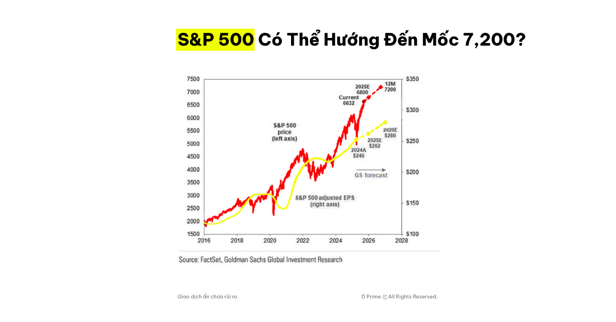 Trên thực tế, Goldman Sachs gần đây đã nâng mục tiêu cuối năm cho S&P 500 lên mốc 6,800 điểm, dựa trên sự kết hợp giữa các đợt cắt giảm của Fed và lợi nhuận tốt hơn kỳ vọng của nhiều doanh nghiệp. Và hãy chú ý, rằng mục tiêu kể trên chỉ cách ngưỡng 7,000 điểm khoảng 200 điểm.