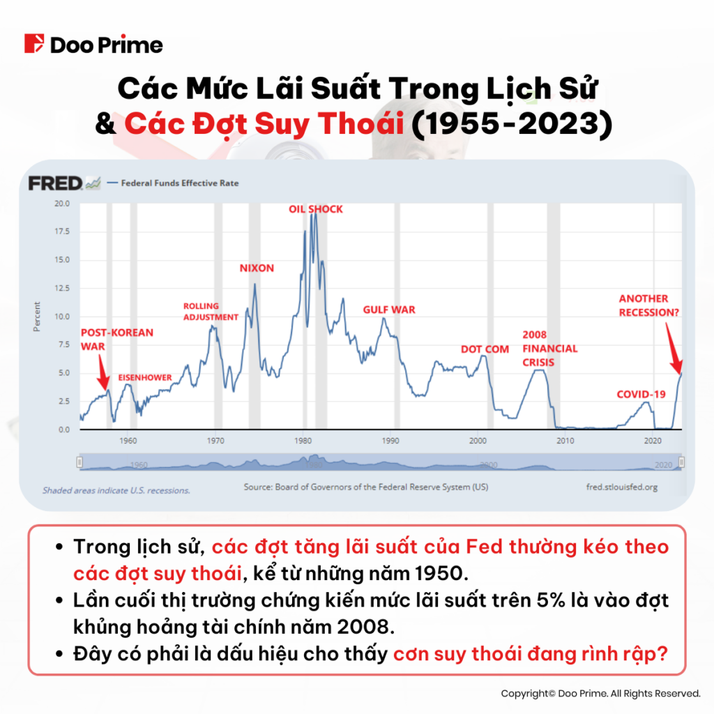 Trong bối cảnh hiện tại, Fed tiếp tục thắt chặt chính sách tiền tệ nhằm chống lại tình trạng lạm phát đang ở mức cao dai dẳng như bấy lâu nay. Tuy nhiên, nói đi cũng phải nói lại, mức lãi suất cao có khả năng dẫn đến sự chững lại của nền kinh tế, gây ra sự suy giảm của các tài sản rủi ro như cổ phiếu, cũng như tạo ra nhiều bất cập trong hệ thống của lĩnh vực ngân hàng.
